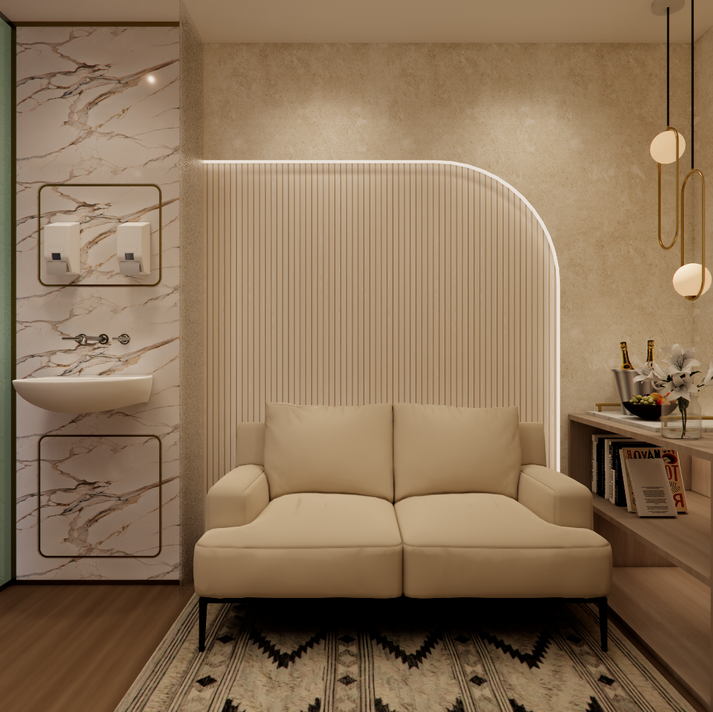 Inspired by London’s enduring elegance, a neutral palette sets a sophisticated tone, while gold accents introduce a touch of luxury. Designed with a user-centric approach, the layout ensures a smooth flow between waiting and working areas, enhancing both operational efficiency and client comfort and wellbeing.